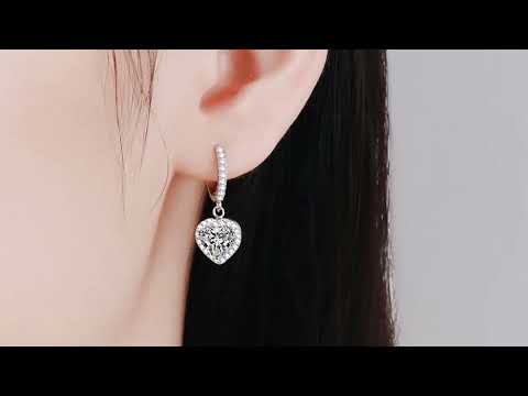 Discover the ultimate elegance with our Heart-Shaped Halo 1 Carat Moissanite Diamond Platinum-Plated S925 Pave Leverback Drop Earrings. Crafted with expert precision and designed to sparkle, these earrings are the perfect addition to any outfit. Made with care, these earrings are sure to add a touch of sophistication to your look.