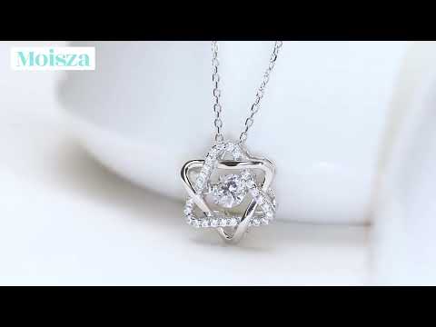 Experience the opulence of the Six-Pointed Star necklace, adorned with a dazzling 0.5 carat Moissanite encased in a pavé frame of sterling silver. This mesmerizing design, evocative of a dancing star, is certain to captivate onlookers. Pamper yourself or a special someone with this exquisite item, available at an exceptional value, and elevate any event with a touch of exclusivity.