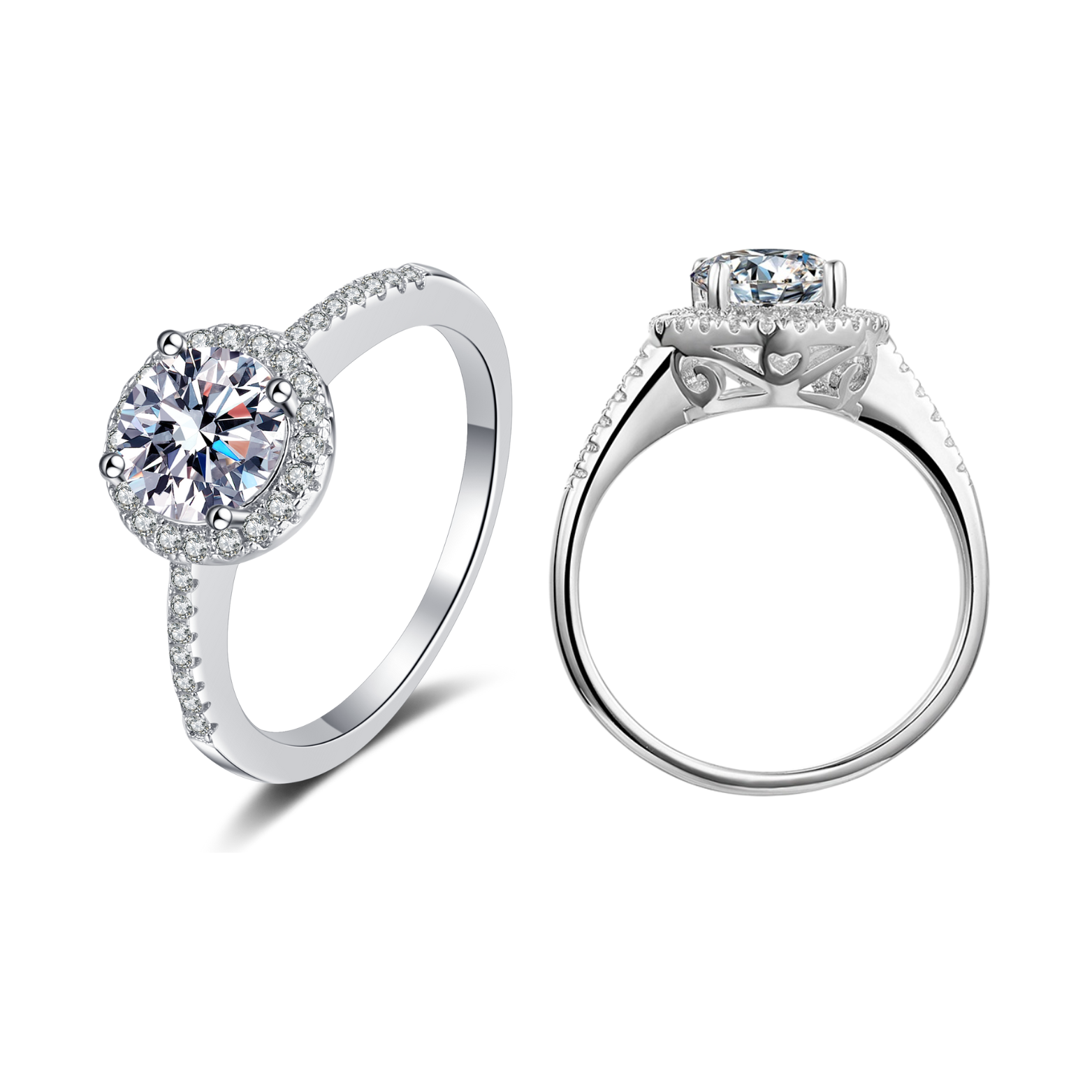 Cathedral Round Cut Halo 0.5 /1/ 2 Carat Moissanite Diamond S925 Engagement Ring