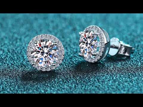 Round Cut Halo 0.5/1 Carat Moissanite Diamond S925 Stud Earrings