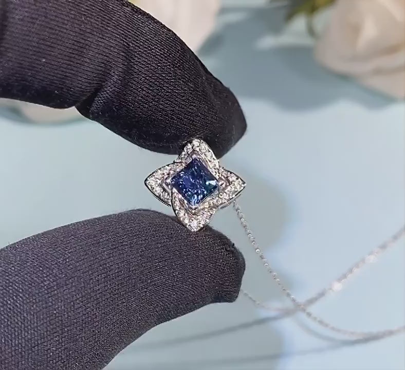 Surprise your loved ones with this pendant necklace, perfect for any special occasion such as Birthdays, Christmas, Weddings, or anniversaries. The "Four Leaves" symbol brings luck and charm. This Four Leaves Princess Cut necklace is made with a 1-carat white/blue D-Color VVS Moissanite and set in a genuine Sterling Silver S925 chain.