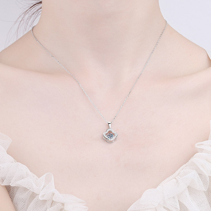 Happy Four Leaves 0.5 Carat Moissanite S925 Pavé Dancing Necklace