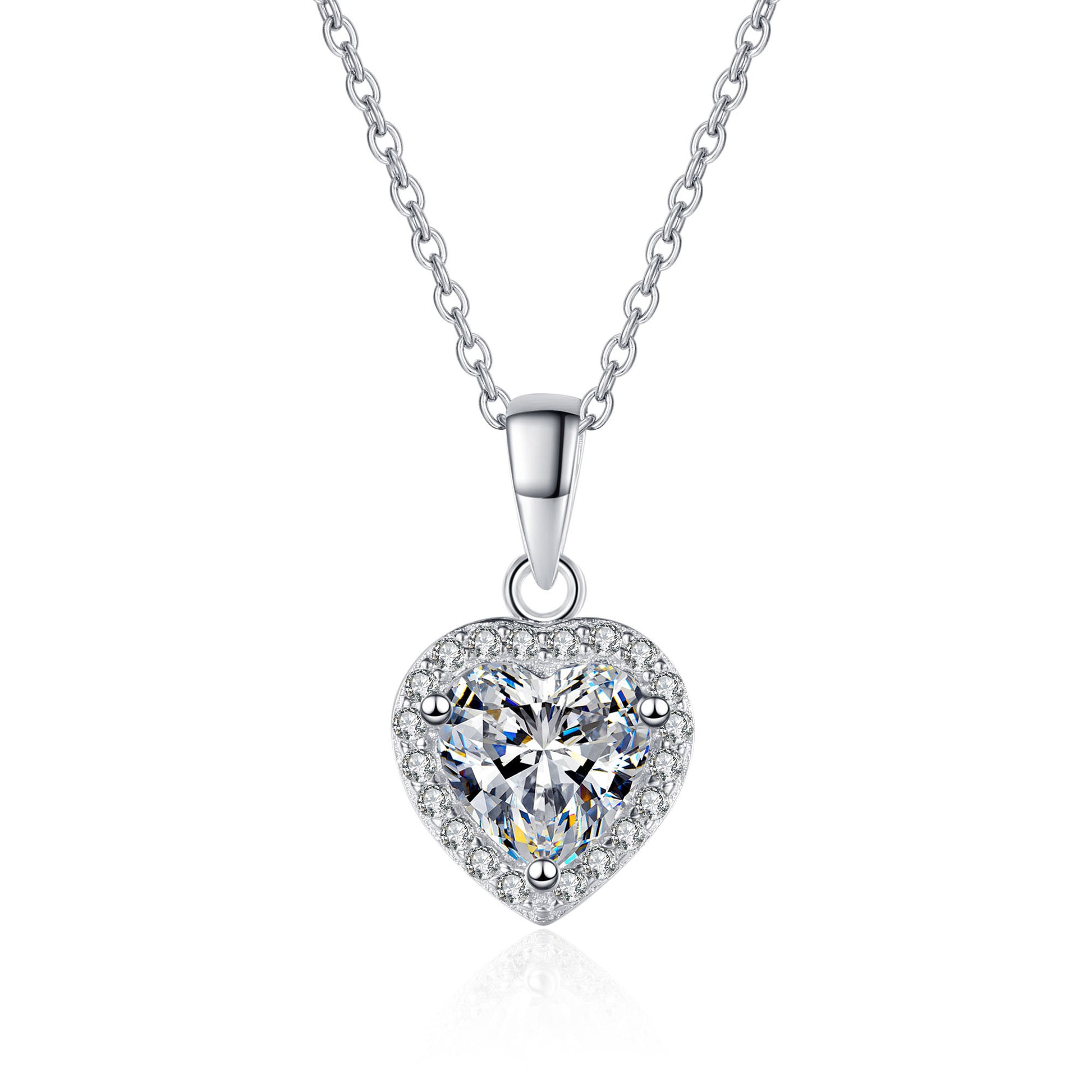 Heart-Shaped Halo 1 Carat Moissanite Pendant Platinum-Plated S925 Necklace