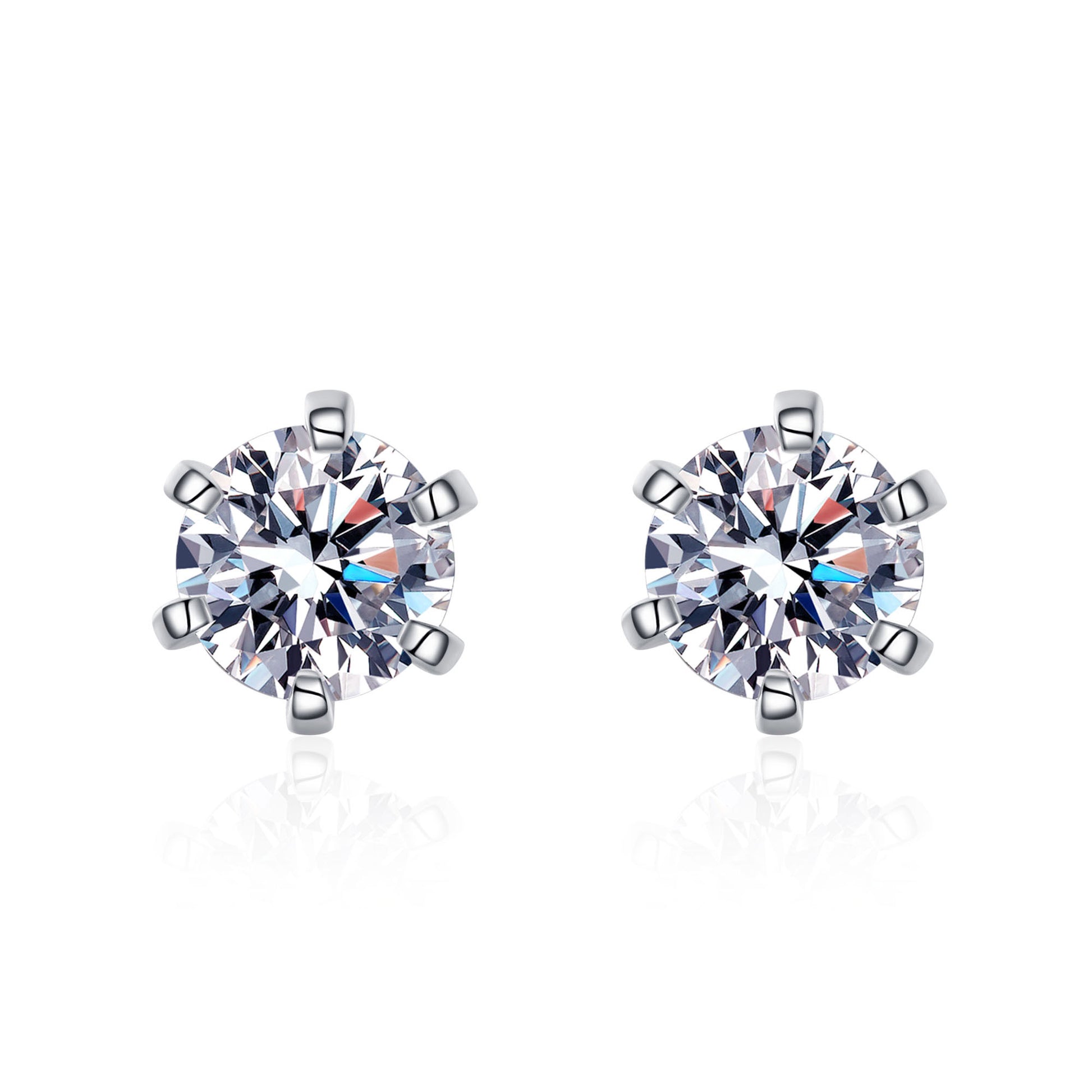 These classic 6-prong Round Solitaire screw-back stud earrings are crafted from S925 sterling silver and available in 4 high-grade Moissanite sizes (0.3ct, 0.5ct, 1.0ct, and 2.0ct) with D-color and VVS clarity. Perfect for minimalist looks, they always stay in style and are sure to dazzle.