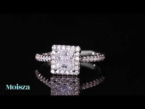 Express your eternal love with this Princess Cut Halo 1ct S925 Moissanite Engagement Ring on a Pave Band. This ring will make a perfect engagement or proposal ring, featuring a classic design with cluster stones that enhance the solitaire. Crafted with 925 sterling silver and D Color VVS Moissanite for superior sparkle and clarity, it will make a lasting impression.