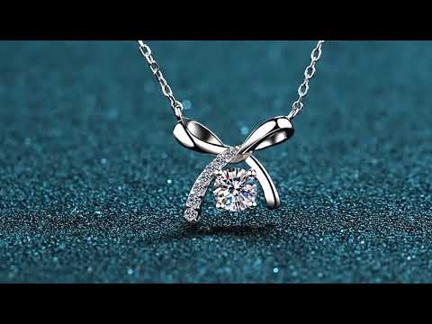 Ribbon Round Cut 0.5 Carat Moissanite Diamond S925 Pavé Pendant Necklace