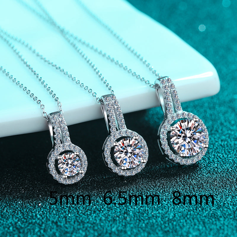 Expertly crafted, this Round Halo Moissanite Pendant Necklace features a stunning main stone that ranges between 0.5 to 5 carats. Designed with a pave bail and made with S925 material, this necklace exudes elegance and luxury. Elevate any outfit with this timeless piece and sparkle with confidence.