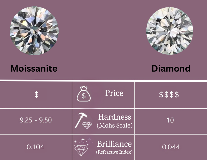 With its higher refractive index, Moissanite reflects more light than diamond — delivering vivid fire, striking sparkle, and brilliance you can instantly see.