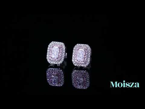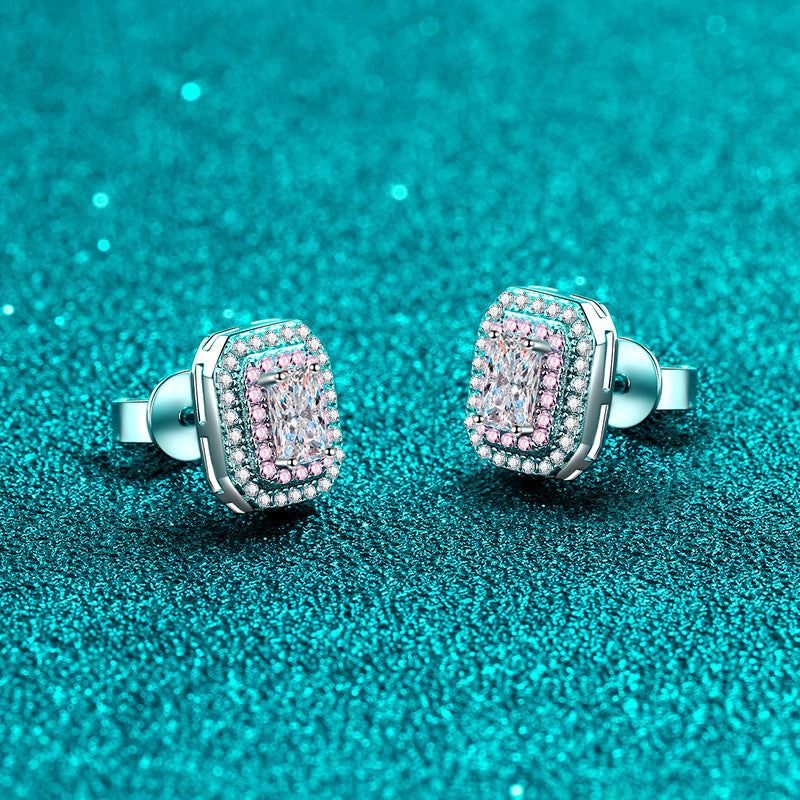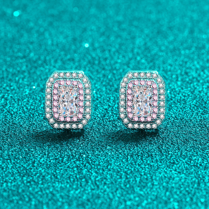 Add a pop of color with these playful emerald/radiant cut pink double halo earrings. At 0.5 carats, they provide just the right amount of sparkle. Made with S925 silver and high-quality Moissanite diamonds, these studs are perfect for any occasion.