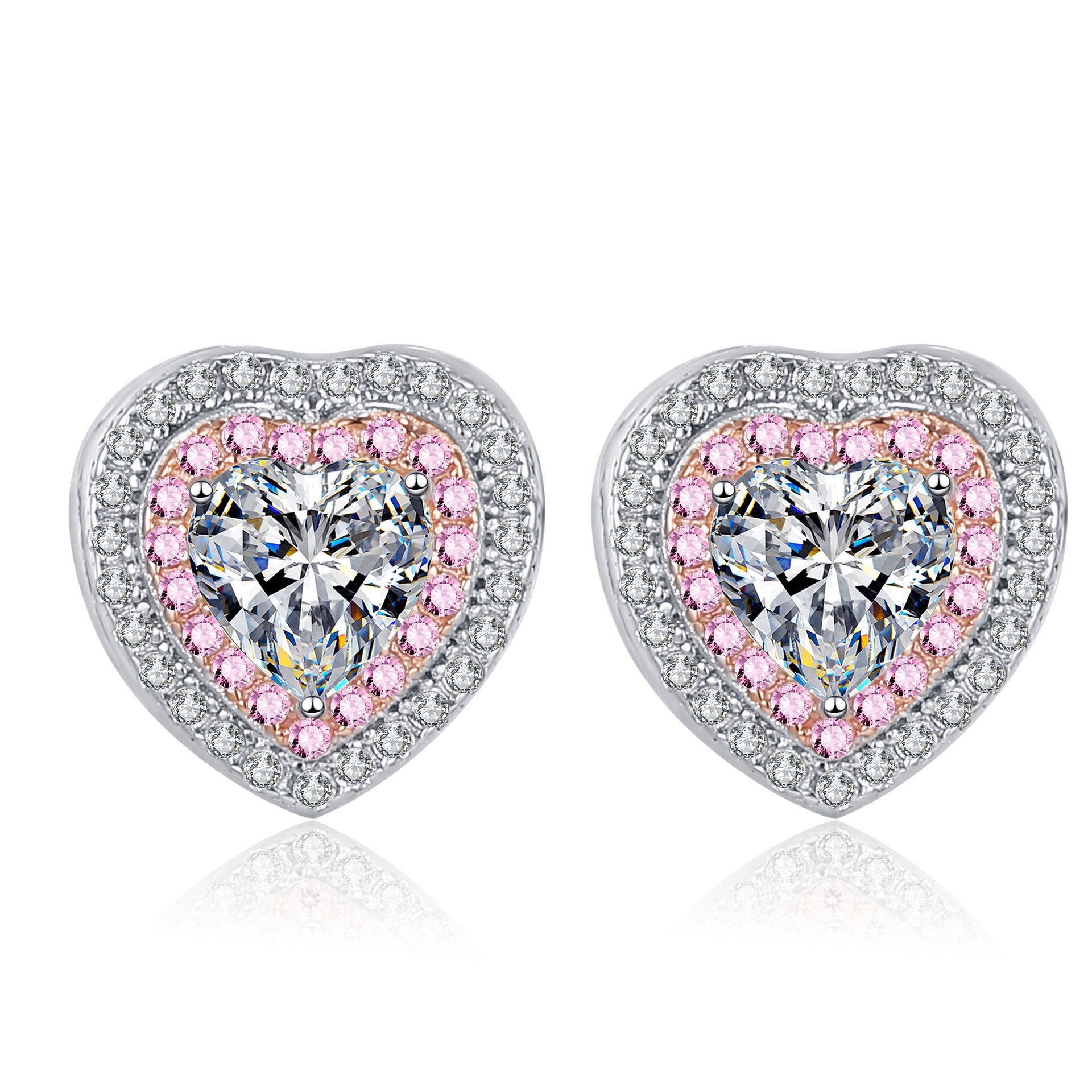 Add a pop of color with these playful heart-shaped pink double halo earrings. At 0.5 carats, they provide just the right amount of sparkle. Made with S925 silver and high-quality Moissanite diamonds, these studs are perfect for any occasion.