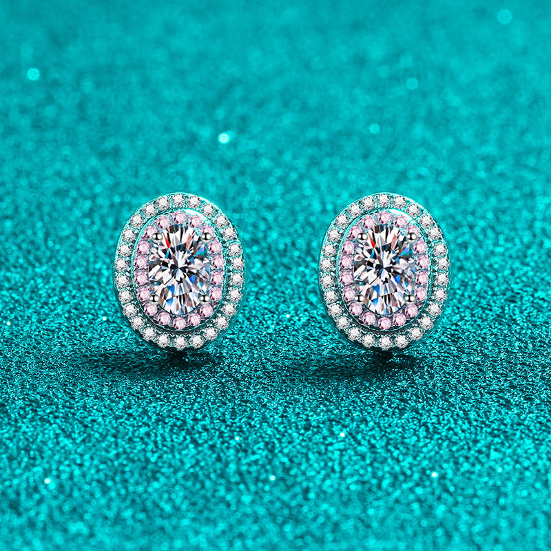 Add a pop of color with these playful oval cut pink double halo earrings. At 0.5 carats, they provide just the right amount of sparkle. Made with S925 silver and high-quality Moissanite diamonds, these studs are perfect for any occasion.