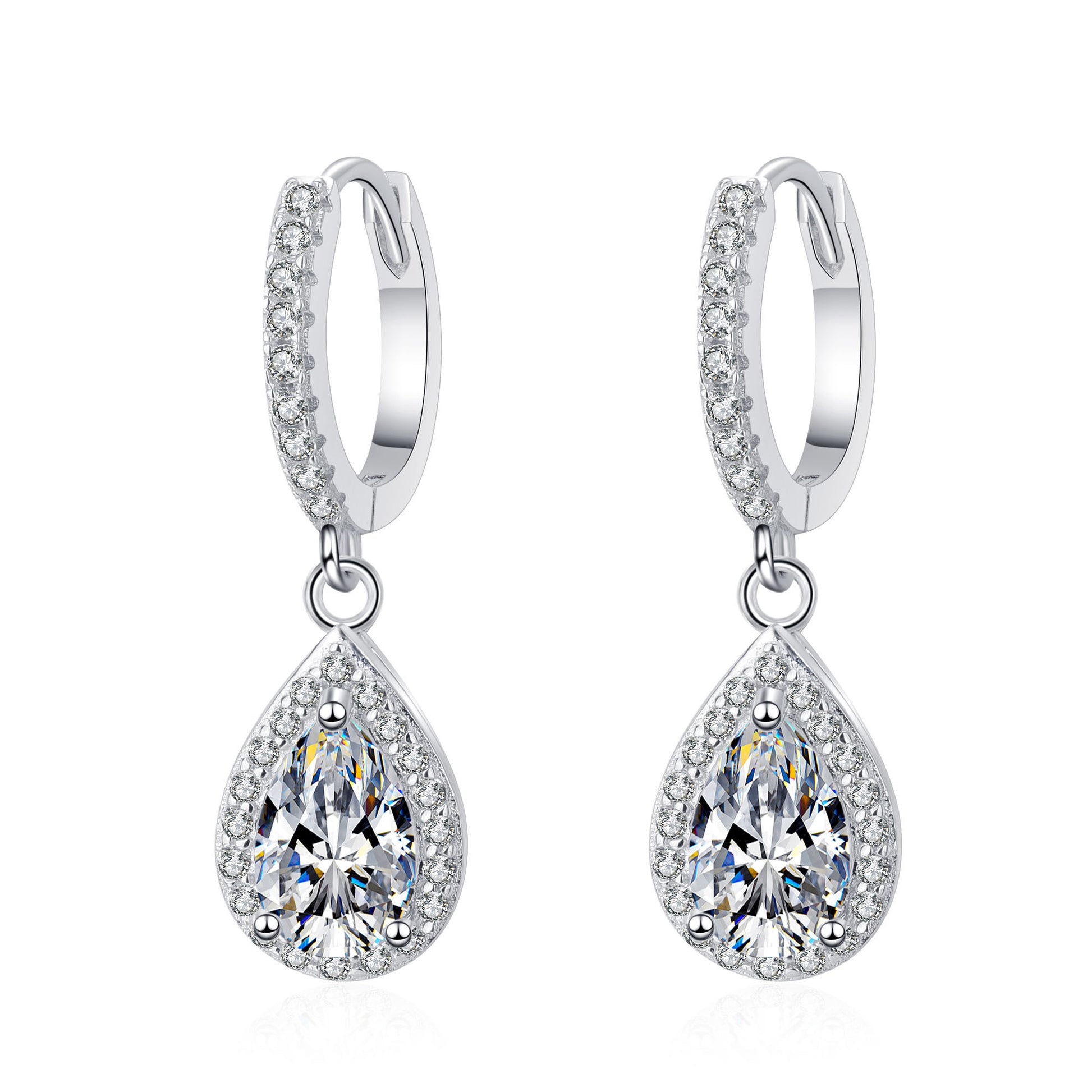Upgrade your accessory game with our Pear Cut Halo 1 Carat Moissanite Diamond Platinum-Plated S925 Pave Leverback Drop Earrings. These stunning earrings are designed to add a touch of elegance and sparkle to any outfit. With a pear cut halo design and platinum plating, they are the perfect combination of style and quality. Elevate your look and feel confident with every wear.