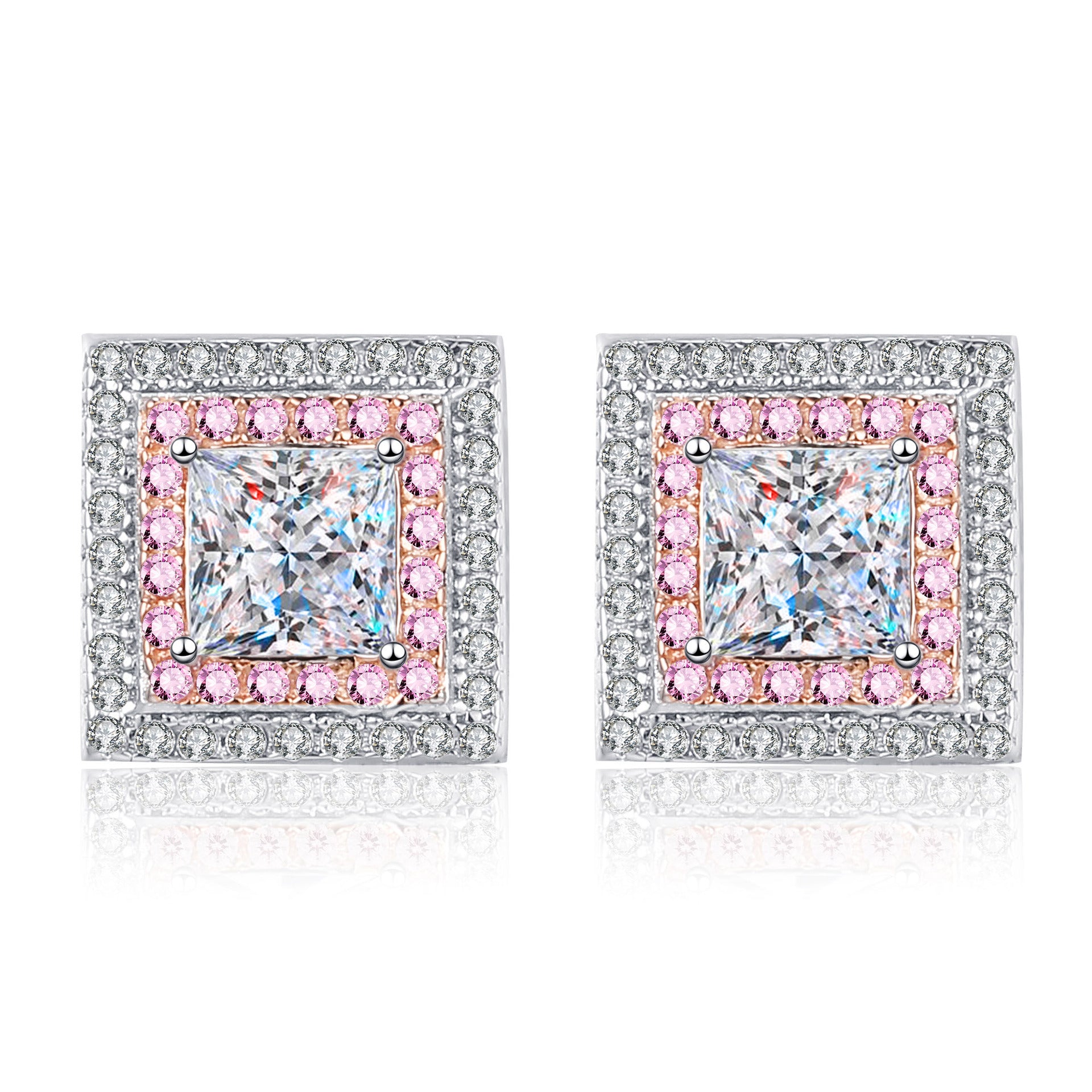 Add a pop of color with these playful princess cut pink double halo earrings. At 0.6 carats, they provide just the right amount of sparkle. Made with S925 silver and high-quality Moissanite diamonds, these studs are perfect for any occasion.