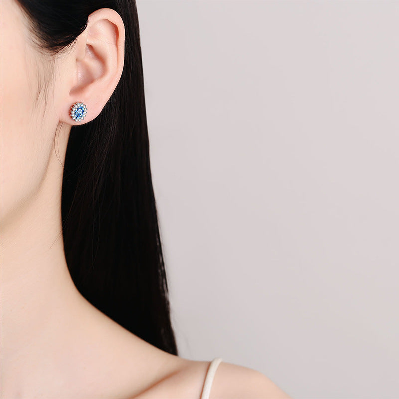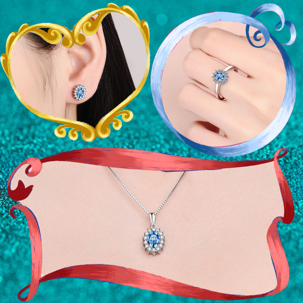 Indulge in elegance with our Princess Diana Oval Cut Sapphire Halo Jewelry Set. This 4-piece set includes a stunning 0.5 / 1 carat Moissanite stone surrounded by a sparkling halo, perfect for adding a touch of royalty to any outfit. Don't miss out on this timeless collection!