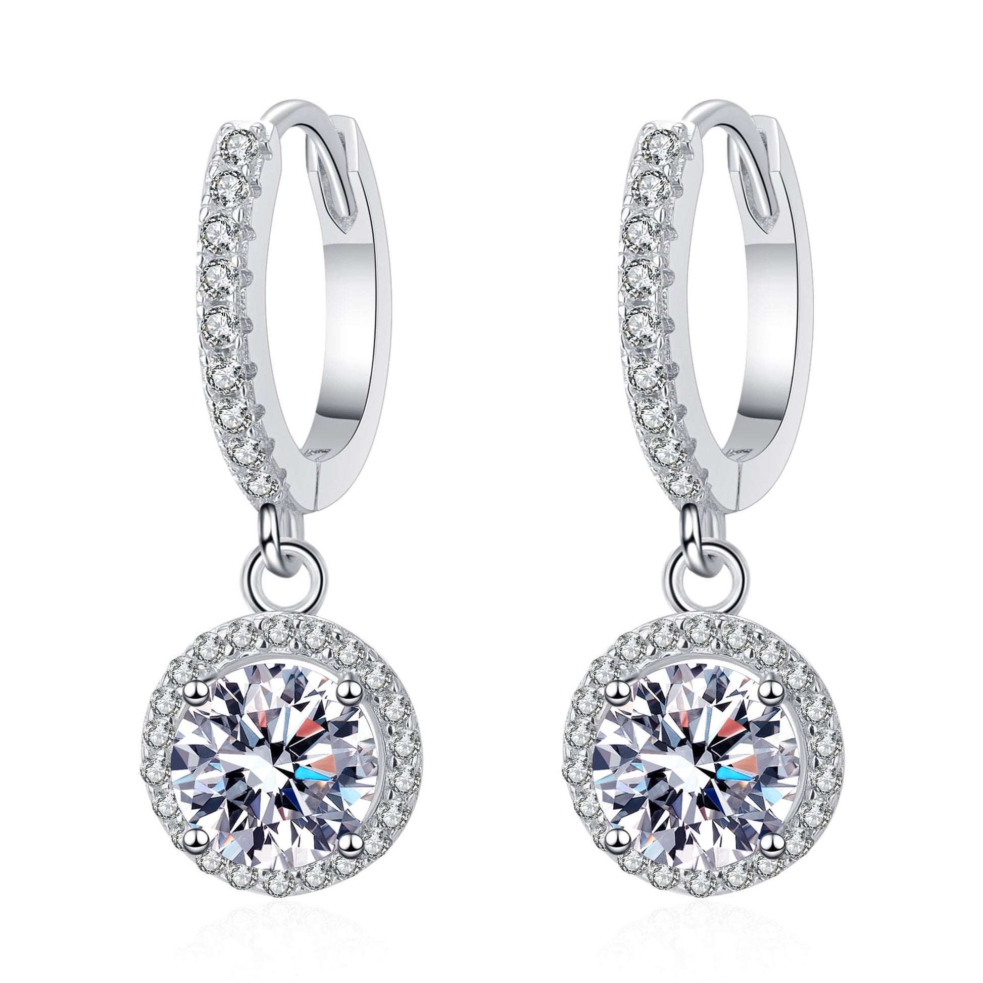 Dazzle with our Round Cut Halo 1-carat Moissanite Diamond Drop Earrings! The perfect combination of elegance and sparkle, these leverback earrings feature a stunning circular halo design and a 1-carat moissanite diamond center stone. Made with high quality S925 material, these earrings are the epitome of luxury.