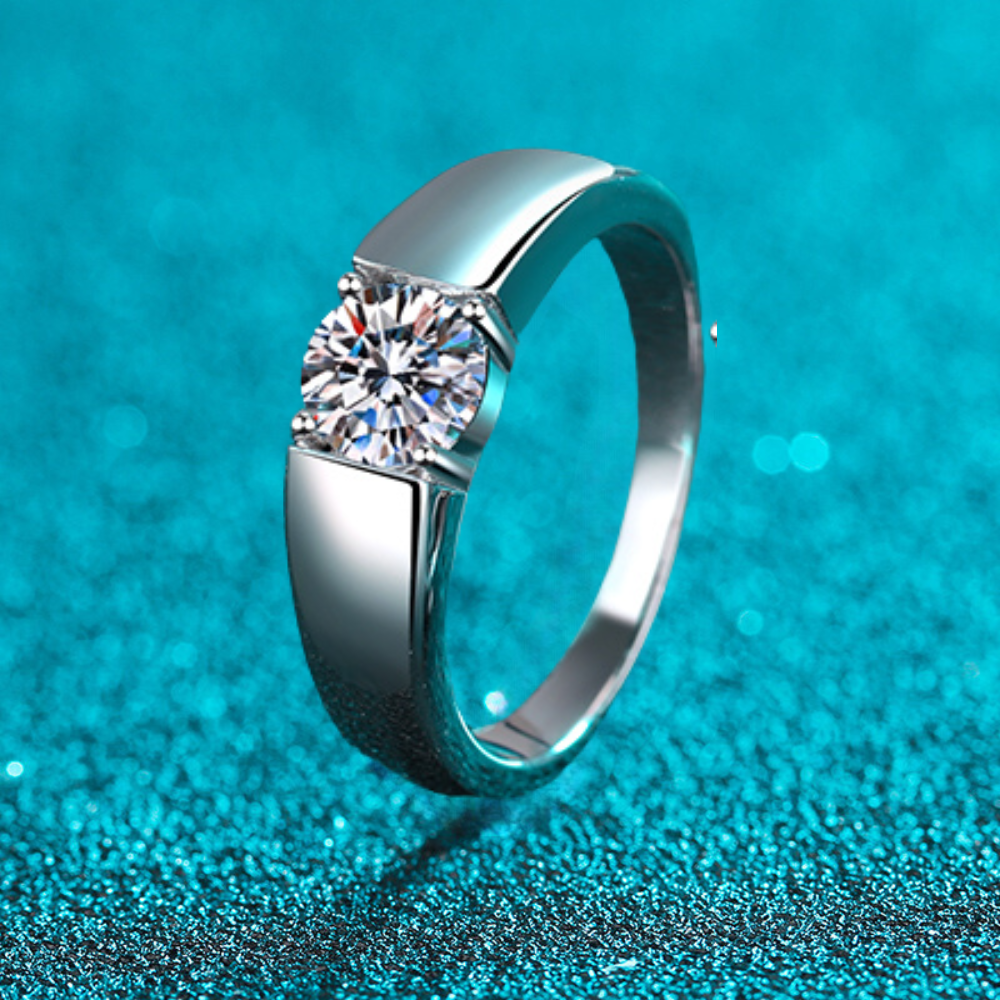 This Moissanite Man Ring is ideal as a wedding ring or promise ring. The sleek yet stylish design has a modern appeal that is loved by minimalists. Get your hands on this extraordinary Moissanite Ring at an unbeatable price for your special occasion.